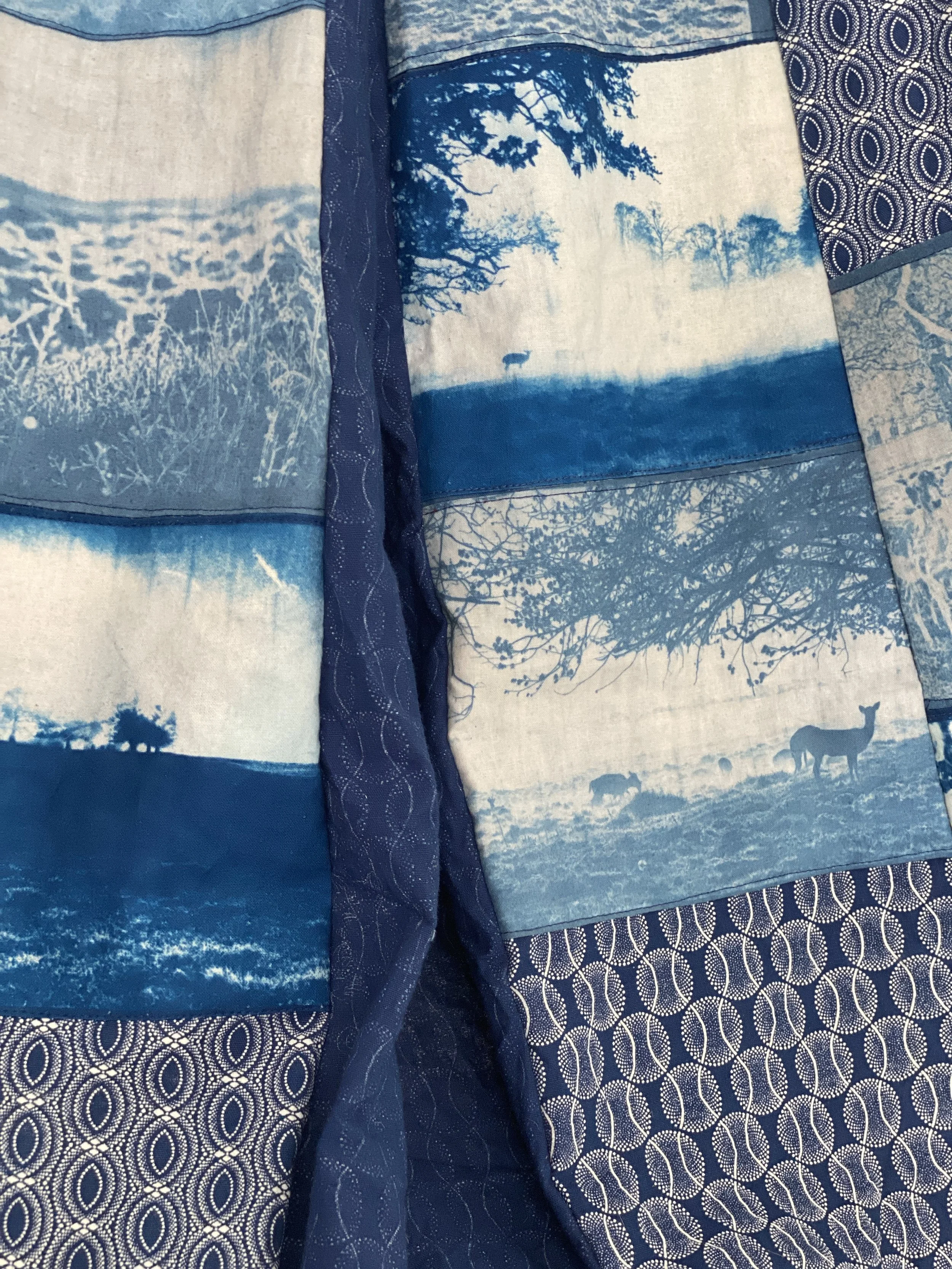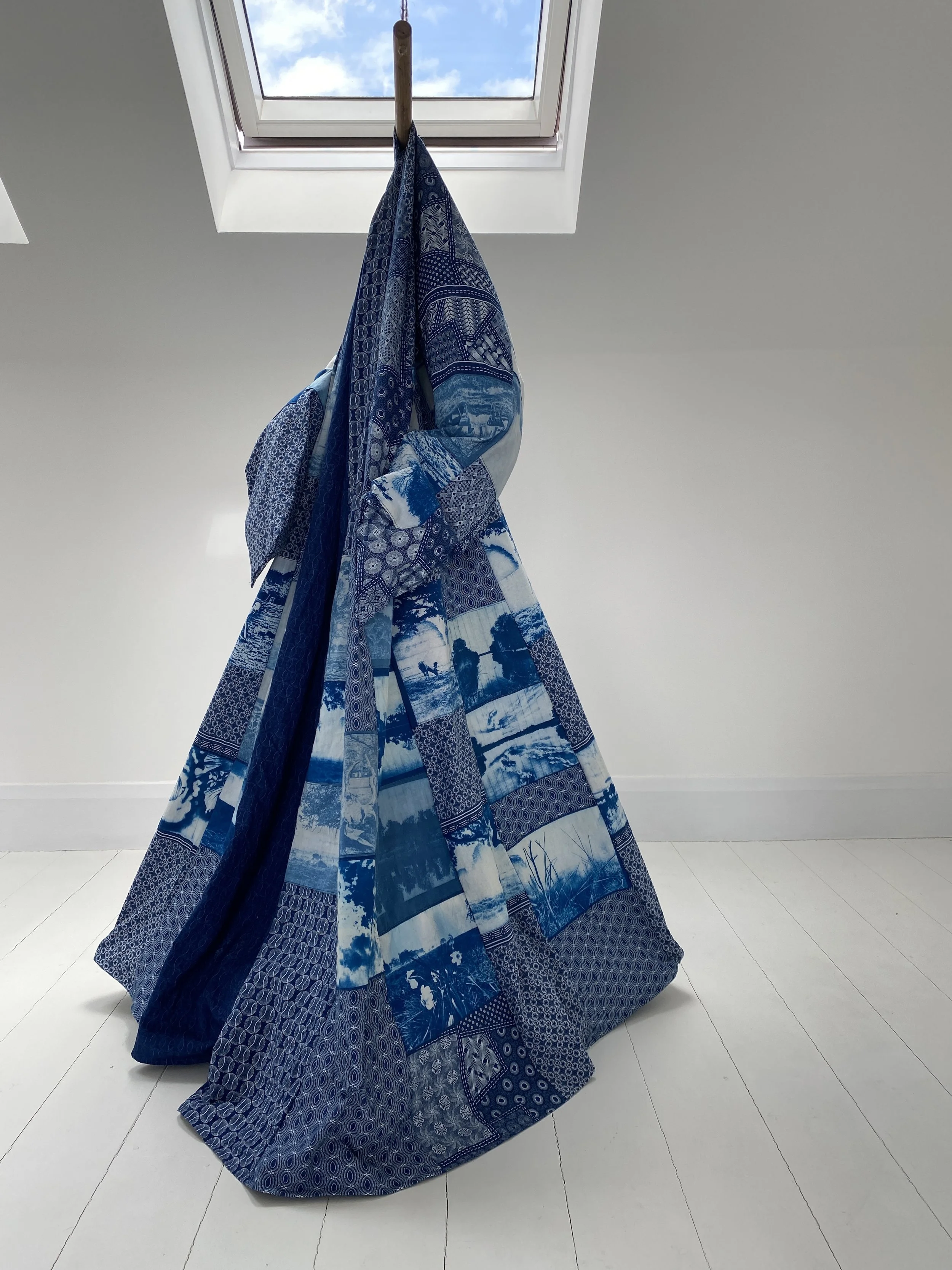 In this work the use of the Cyanotype photographic printing technique was intended to reinforce the importance of light and sun (it harnesses the sun to expose the photographs and I did this in my garden at home).